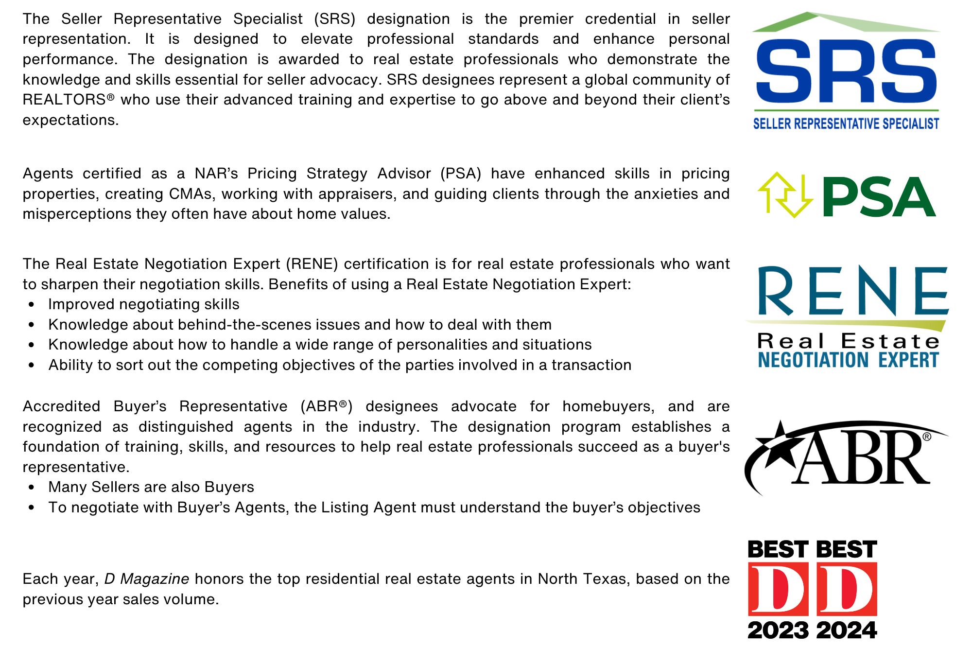 Take a look at some of Sandi's certifications and awards below: